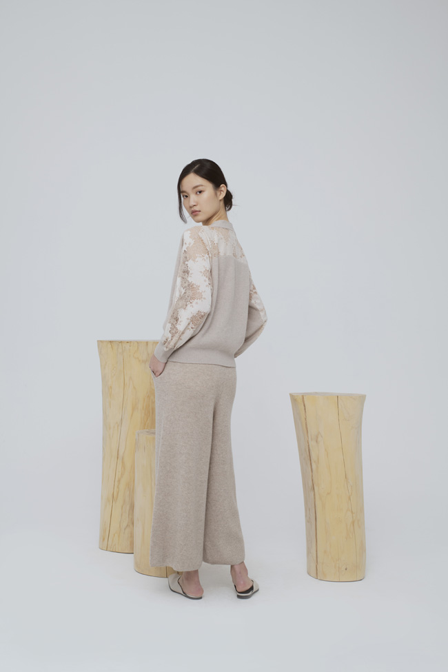 Sandra:我們的羊絨品牌設(shè)計(jì)亮點(diǎn):時(shí)尚、簡(jiǎn)約、舒適自在,往往會(huì)將羊絨和蕾絲及真絲相拼來(lái)微妙設(shè)計(jì)。這季的設(shè)計(jì)靈感是:新經(jīng)典。如何回歸少而精,打造更少但更好的衣櫥,適合當(dāng)代女性們多場(chǎng)景穿搭。另外,你以為羊絨只是秋冬的寵兒,那就大錯(cuò)特錯(cuò)了。羊絨的透氣性、吸濕性非常強(qiáng)。不通的織法以及面料搭配,可以創(chuàng)造出羊絨不通的質(zhì)感。BYARN在羊絨的基礎(chǔ)上,加上了天然纖維和真絲,既在舒適程度上保證了品質(zhì),又平衡了實(shí)穿與設(shè)計(jì)感、經(jīng)典與創(chuàng)新度之間的微妙界限。