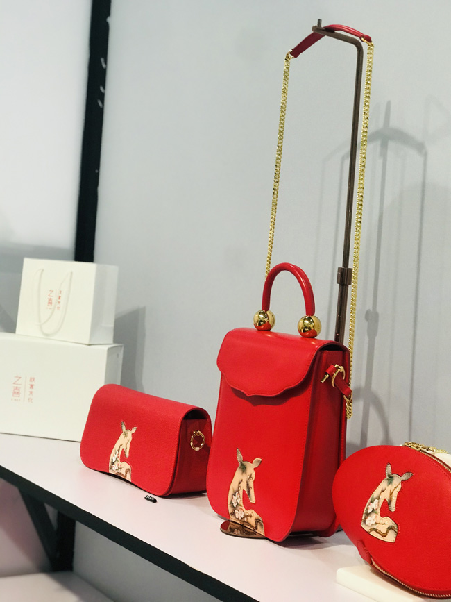 Anna之喜是故宮博物院授權(quán)合作唯一高端皮藝品牌。此次在展會(huì)陳列包款為「紫禁瑞鹿」系列及之喜&故宮聯(lián)名出品「千里江山」「吉慶有余」「如意海棠」中國(guó)盤系列!紫禁瑞鹿系列產(chǎn)品創(chuàng)作靈感來自《清宮獸譜》鹿圖,在傳統(tǒng)文化中,“鹿”為神奇之瑞獸,“鹿” 與 “祿”諧音,身姿神圣而高貴,寓意“福祿”,設(shè)計(jì)師以故宮博物院藏品 《清宮獸譜》 中的瑞鹿圖為產(chǎn)品圖案設(shè)計(jì)原型,提煉“鹿”剪影的靈動(dòng)外形,結(jié)合梅花枝頭寫實(shí)手法,將傳統(tǒng)美學(xué)與當(dāng)代藝術(shù)設(shè)計(jì)結(jié)合。「千里江山」中國(guó)盤,圖案來源:故宮博物院館藏北宋《千里江山圖》,產(chǎn)品亮點(diǎn):秉承簡(jiǎn)約、精致、卓越的設(shè)計(jì)理念,將東方雅致生活美學(xué)與歐洲傳世皮藝制作工藝相結(jié)合,再經(jīng)雕刻師手工雕刻,彩繪師手工描繪用于產(chǎn)品設(shè)計(jì)當(dāng)中!