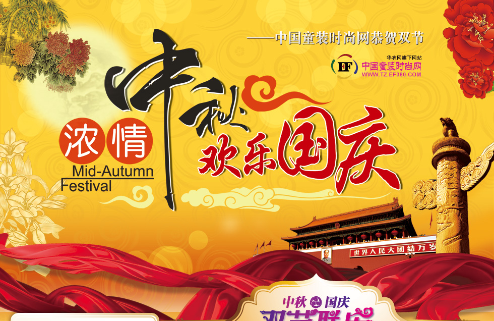中秋節(jié),傳統(tǒng)節(jié)日之一,為每年農(nóng)歷八月十五,中秋月圓、丹桂飄香,是家人團圓的大好時機。國慶節(jié),每年的10月1日,是舉國歡慶、紀(jì)念祖國成立的喜慶節(jié)日。2012中秋節(jié)、2012國慶節(jié)非常巧妙的趕在了一起,值此長假到來之際,童裝時尚網(wǎng)推出中秋國慶雙節(jié)專題,祝福朋友們節(jié)日快樂、幸福安康!