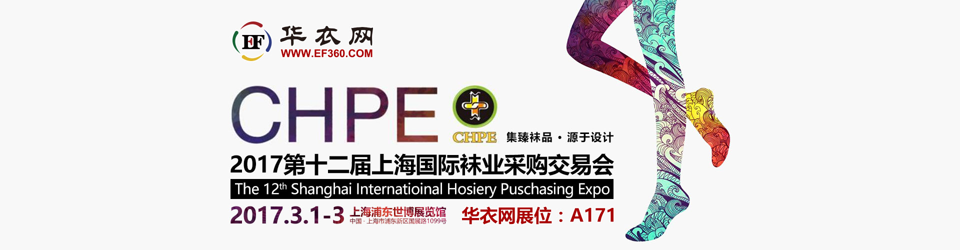 2017第十二屆上海國際襪業(yè)采購交易會(2017 CHPE)將于2017年3月1日-3日,與您相約上海浦東·世博展覽館(國展路1099號)。