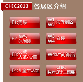 CHIC2013與男裝實力品牌一道著力打造和傳播高品質的男性生活方式,掀起一場品質與實力的“力戰(zhàn)“硝煙。E1 / E2兩館將形成“大男裝”館概念,E1館以男正裝及男士高端都市休閑裝為主,展示面積達14000平方米。男裝館延續(xù)“正裝年輕化、品牌國際化”的態(tài)勢,云集30余個優(yōu)秀的高端男裝品牌,以及海外精品男裝。