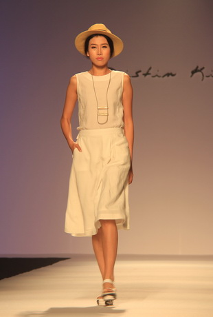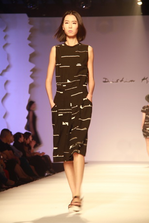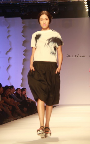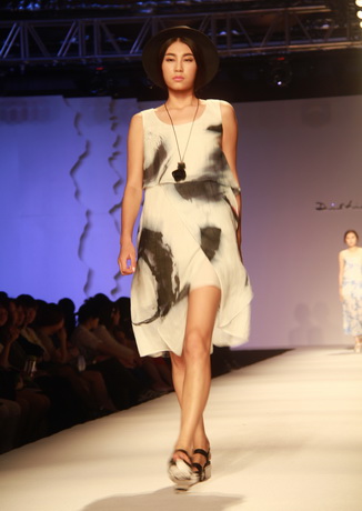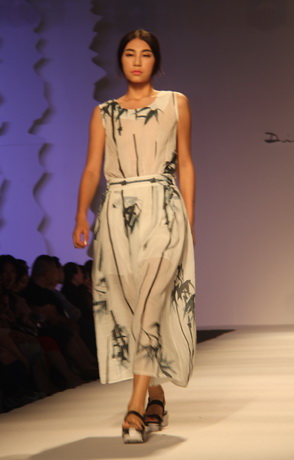 既然是藝術(shù)女裝,迪斯廷.凱的設(shè)計靈感自然和藝術(shù)不分家。就從此次發(fā)布會的幾大系列來說,都會系列的靈感源于楊正新的《群雀》和《竹》水墨系列作品及當(dāng)代畫家吳冠中寫意山水作品的線條元素,設(shè)計出山水空靈和現(xiàn)代隨性兼具的系列作品;摩登系列則選用齊白石的《玉蘭》、門采爾的《房屋與樹叢》等作品,以大氣的演繹手法使原本平面的繪畫作品呈現(xiàn)出立體的幾何美感,使設(shè)計更加國際化;在精品系列中,以精為核,從寫意水墨國畫《云與雁》中汲取靈感,并將素雅的花色繪制于韓國進口花紗面料上,精致的呈現(xiàn)出高雅質(zhì)美。