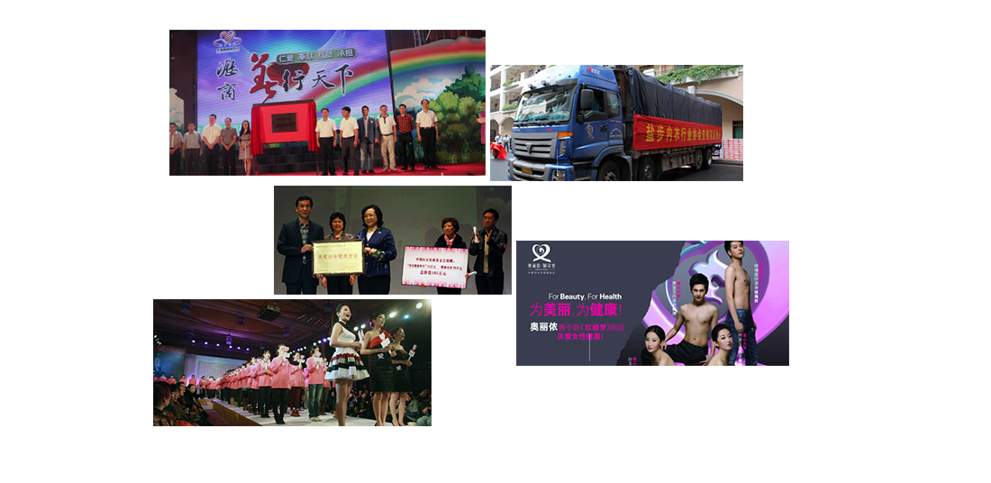 在企業(yè)發(fā)展到一定階段后,奧麗儂并沒有忘記企業(yè)應(yīng)該承擔(dān)的社會(huì)責(zé)任,一直以“關(guān)愛女性健康,促進(jìn)行業(yè)和諧發(fā)展”為已任,并積極參與和倡導(dǎo)各項(xiàng)行業(yè)推廣與社會(huì)公益活動(dòng)。2010年,“健康內(nèi)衣專家”奧麗儂攜手新版《紅樓夢》四大主演,攜手婦聯(lián)共同成立了“奧麗儂·郁金香”公益基金,關(guān)愛女性健康,被婦聯(lián)授予“婦女慈善獎(jiǎng)”。