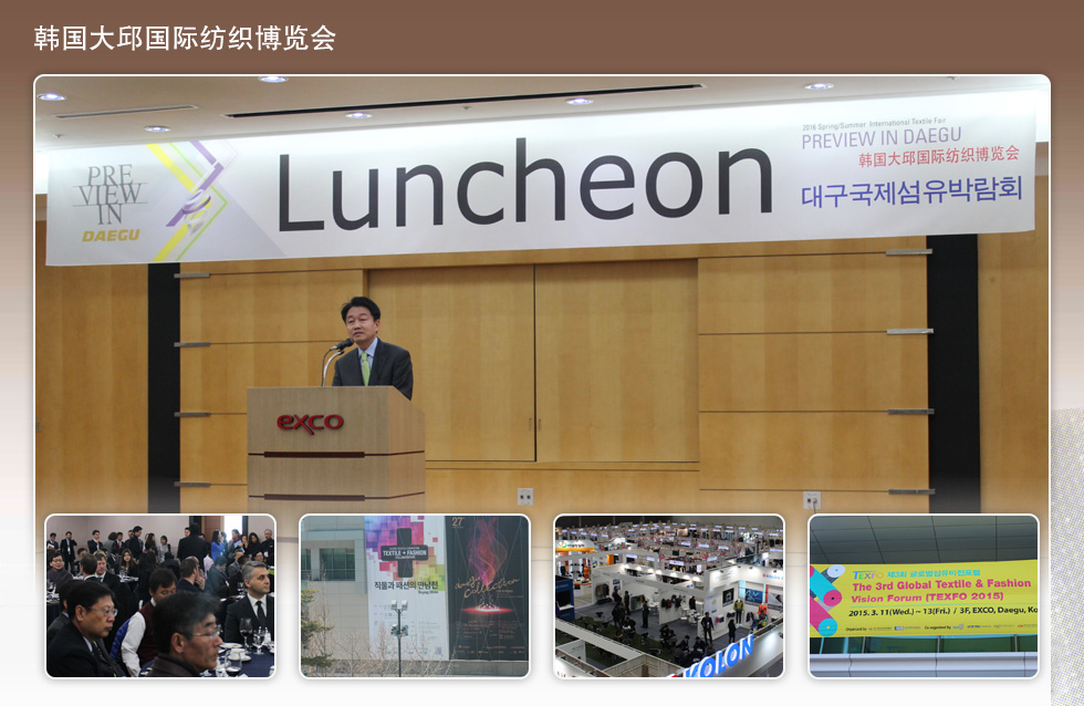 2015年3月11-13日,華衣網(wǎng)應(yīng)應(yīng)韓國(guó)纖維產(chǎn)業(yè)聯(lián)合會(huì)和AVING NEWS的邀請(qǐng),出席了在韓國(guó)大邱舉辦的2015韓國(guó)國(guó)際紡織展覽會(huì),針對(duì)展會(huì)本身及各大參展品牌進(jìn)行報(bào)道。除此之外,華衣網(wǎng)記者還深入展會(huì),對(duì)展團(tuán)的參展情況進(jìn)行了詳細(xì)報(bào)道。本屆展會(huì)報(bào)道以圖文專題形式通過網(wǎng)絡(luò)發(fā)布,敬請(qǐng)關(guān)注!